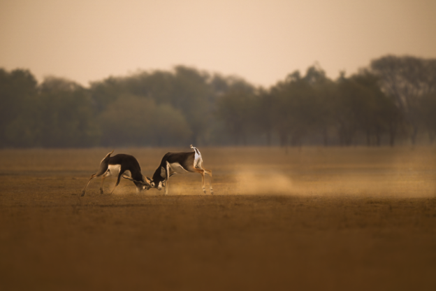 And they do exhibit different kinds of behaviour during different times. For instance, if you visit a blackbuck habitat during their mating season, you’ll often witness males locking horns in dramatic fights to display their strength and to defend their territory. If one can position themselves against the setting sun, then they can capture dramatic images of black bucks locking horns with dust arising into the golden light. That’s where my research pays off.