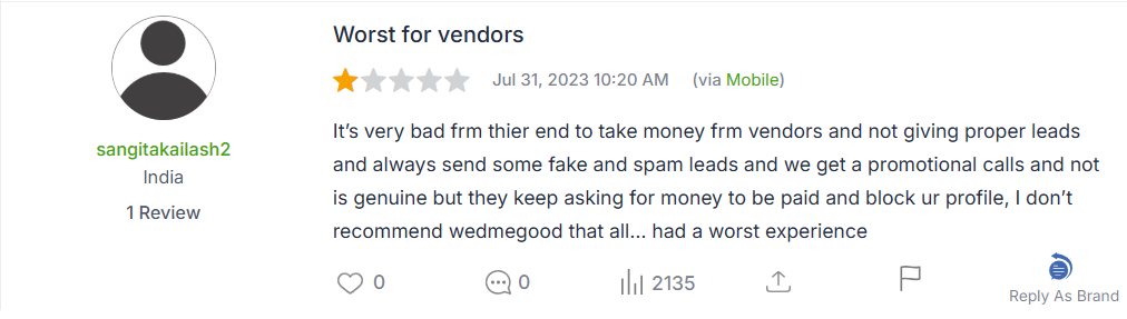 The wedding industry thrives on reputation. One bad review can undo years of goodwill—and the same applies to platforms. If WedMeGood and others like it want to remain relevant, transparency must replace opacity. Sales scripts can’t outshine statistics.