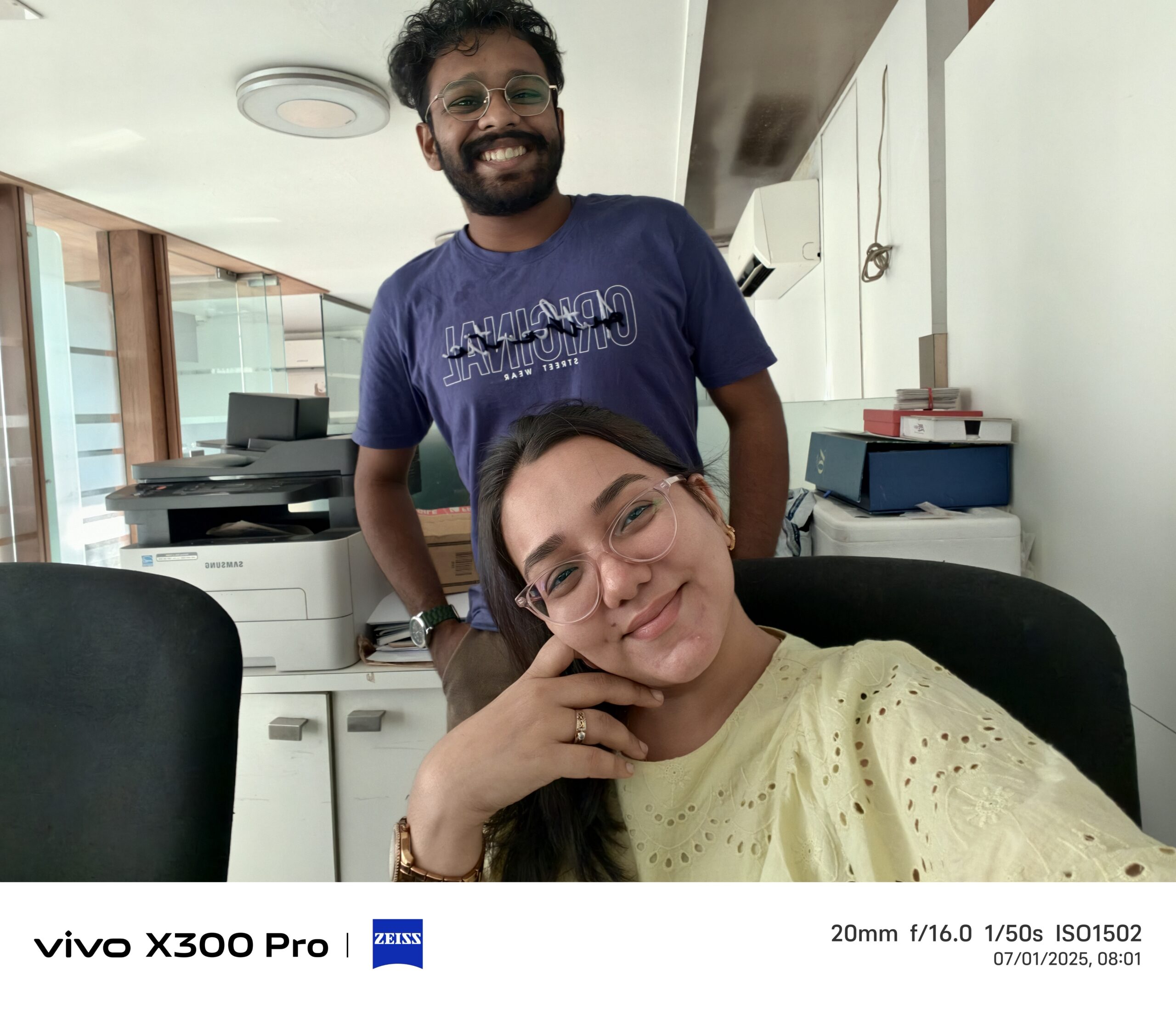 Interestingly, the X300 Pro gives you an option to take selfies at 50 MP like the rear camera, which is a feature unseen in other phones. And the images from the phone are good. They are sharp and detailed, natural and pleasing to the eye. The bokeh performance is good—even in low light and the edge detection in portraits is also decent and the skin tonality and reproduction is also good. The phone does do slight skin smoothening even in the natural mode.
