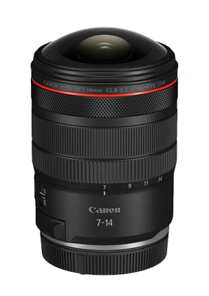The RF7-14mm f/2.8-3.5L Fisheye STM is Canon’s first native RF mount fisheye zoom lens and the world’s first lens to offer a circular 190° angle of view. With a wider 7mm focal length on full-frame cameras, it captures more of the scene than the EF8-15mm f/4L Fisheye USM, enabling distinctive circular and diagonal fisheye effects. The lens features an f/2.8–3.5 aperture for improved low-light performance, an updated optical design for better aberration control, and weighs approximately 476g, making it lighter than its EF predecessor. It also supports 2D 180° VR image creation using Canon’s EOS VR Utility software and uses equidistant projection for more uniform image compression.